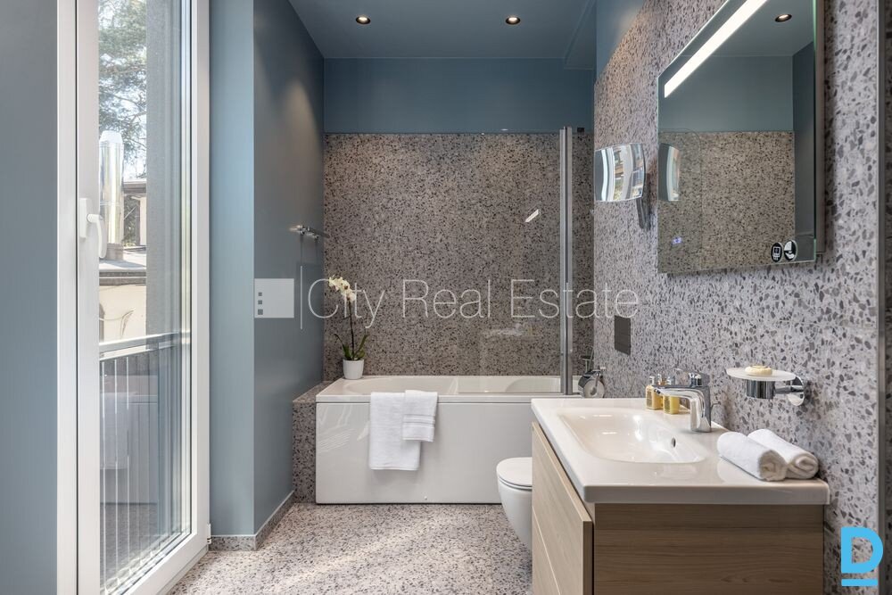 | Jaunceltne, fasādes māja, zaļā teritorija, labiekārtots apzaļumots pagalms, pazemes autostāvvieta, ieeja no ielas, apzaļumota teritorija ar jaunu kokaugu stādījumiem, luksuss apartamenti 104 m2, ir lifts, balkons 6,4 m2, terase 15,2 m2, logi vērsti mājas abās pusēs, guļamistabu skaits 3 gab., istabas izolētas 3 gab., studio tipa, virtuve apvienota ar viesistabu, radiatori ar termoregulatoriem, apkures skaitītāji, individuāla apkures sistēmas uzskaite, pilnā apdare, apsildāmas grīdas, lielie skatlogi, parketa grīda, flīžu grīdas segums, divi sanitārie mezgli, vanna, dušas kabīne, iebūvēta virtuves iekārta, iebūvēti sienas skapji, stūra dīvāns, divguļamā gulta, virtuves galds, krēsli, gaisa kondicionieris, televizors, trauku mazgājamā mašīna, indukcijas plīts, cepeškrāsns, tvaika nosūcējs, mikroviļņu krāsns, veļas mašīna, internets, diennakts videonovērošana, izīrē ar visu bildēs redzamo aprīkojumu, atbrīvots, līdz parkam 360 m, stratēģiski izdevīga vieta, līdz jūrai 260 m, cena vasaras sezonā - 11000.00 EUR, CITY REAL ESTATE ID - 517100 | |