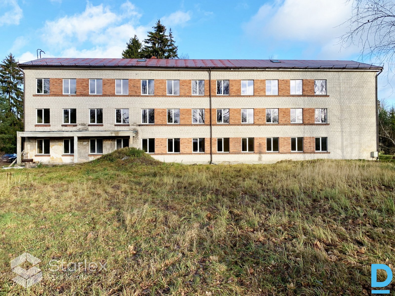 | Продается 3-х этажное кирпичное здание в Кемери, рядом с восстановленным историческим парком Кемери. Общая площадь бывшего здания санатория, построенного в 1960 году, составляет 1090,5 m². Площадь каждого этажа около 365 m², на каждом этаже по 15 однокомнатных помещений площадью от 9 до 12 m², зона санузла и холл. Высота потолков на всех этажах - 3,1 м. Здание под реновацию находится в хорошем техническом состоянии, новые окна и новая кровля. Городское водоснабжение и городская канализация. Также имеется мощное электрическое подключение и подключение газопровода. Площадь земельного участка 3015 m². Согласно территориальному плану города Юрмала, функциональным зонированием, определенным для земельного участка, является территория общественной застройки (P52), где основными видами использования территории являются: строительство учреждений здравоохранения; строительство учреждений социальной помощи; строительство офисных зданий; строительство объектов торговли и/или услуг; строительство объектов туризма и отдыха; строительство учреждений культуры. Виды дополнительного использования территории: строительство рядных домов; строительство многоквартирных домов. Для дополнительного использования максимальная пропорция составляет 49% от общей площади этажей. | |