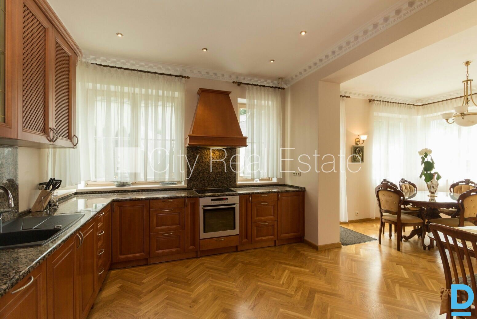 Privātmāja, labiekārtots apzaļumots pagalms, garāža vienai automašīnai, divas terases, guļamistabu skaits 5 gab., viesistaba, virtuve, kabinets, palīgtelpa, veļas mazgātava, gāzes apkure, apsildāmas grīdas, koka stikla pakešu logi, parketa grīda, trīs sanitārie mezgli, džakūzī vanna, tualete, iebūvēta virtuves iekārta, iebūvēti sienas skapji, gulta , divguļamā gulta, atpūtas krēsli, skapis, televizors, ledusskapis, trauku mazgājamā mašīna, elektriskā plīts, cepeškrāsns, tvaika nosūcējs, mikroviļņu krāsns, veļas mašīna, satelīta televīzija, internets, signalizācija, diennakts videonovērošana, līdz jūrai 100 m, CITY REAL ESTATE ID - 425277 |