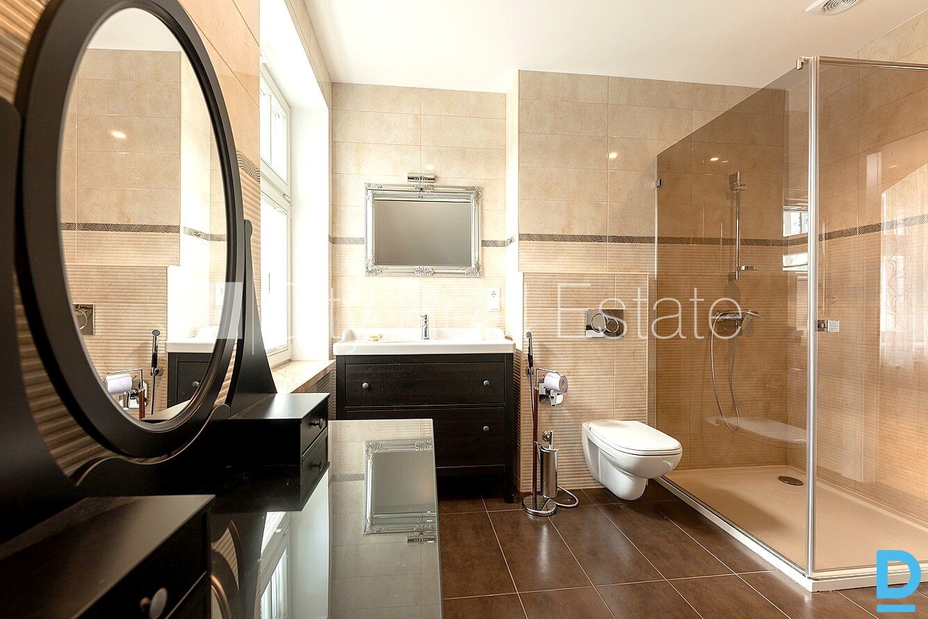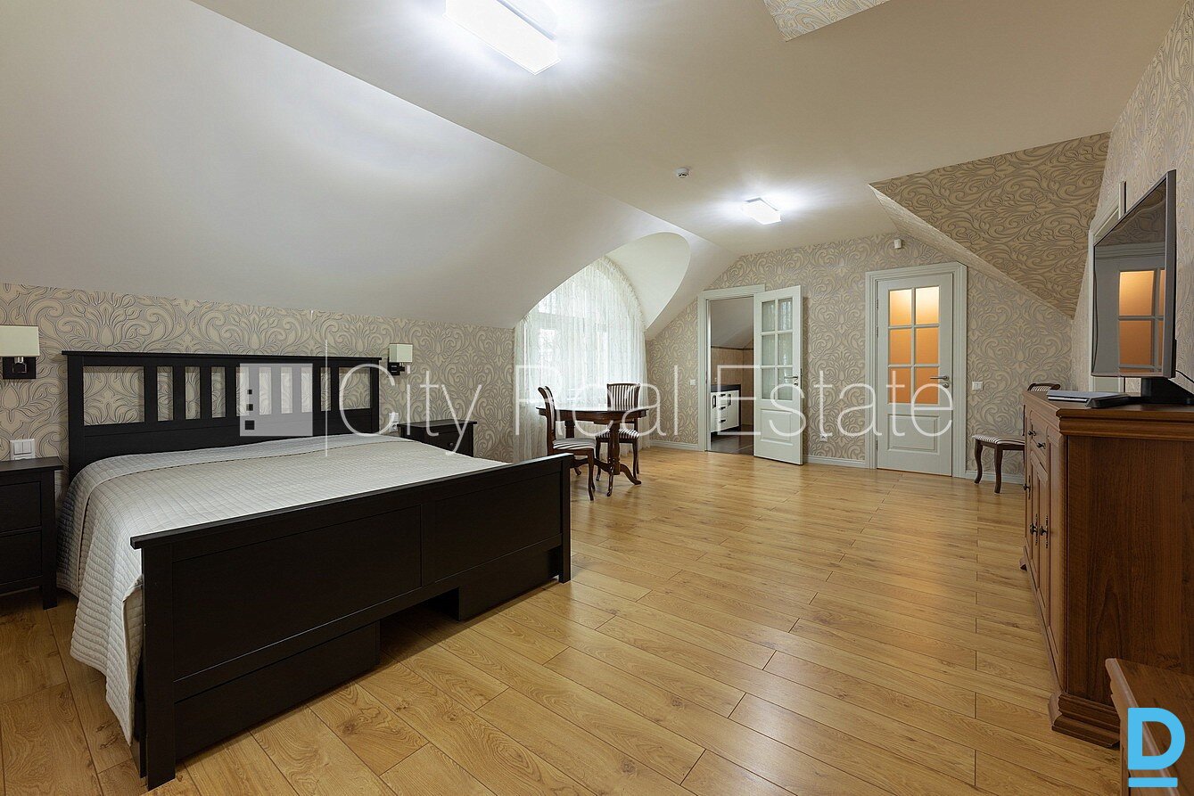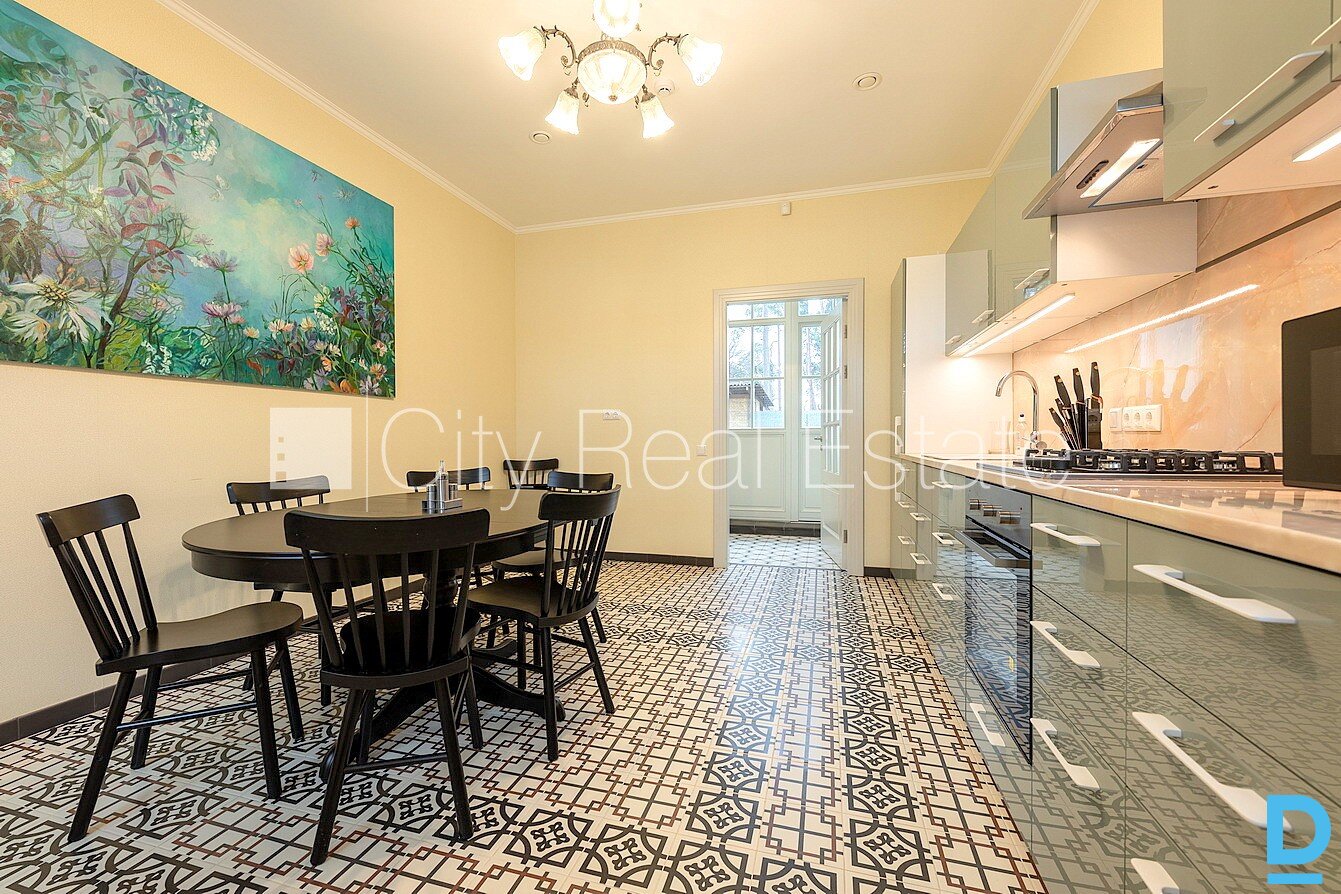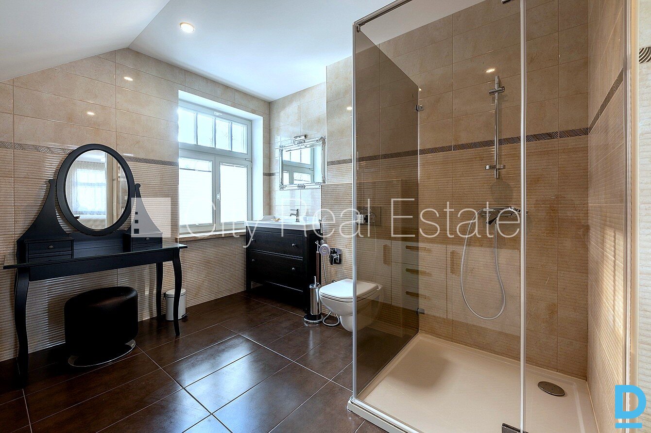 | Privātmāja, labiekārtots apzaļumots pagalms, iežogota teritorija, slēgta teritorija, bezmaksas stāvvieta pagalmā, balkons, terase, logi vērsti mājas abās pusēs, guļamistabu skaits 5 gab., viesistaba, virtuve, halle, kabinets, augstie griesti, gāzes apkure, divos līmeņos, koka stikla pakešu logi, jauna santehnika, parketa grīda, flīžu grīdas segums, vanna, dušas kabīne, bidē, iebūvēta virtuves iekārta, iebūvēti sienas skapji, dīvāns, divguļamā gulta, galds, krēsli, gaisa kondicionieris, televizors, ledusskapis, trauku mazgājamā mašīna, elektriskā plīts, cepeškrāsns, veļas mašīna, optiskais internets, signalizācija, iznomā ar visu bildēs redzamo aprīkojumu, atbrīvo septembrī, stratēģiski izdevīga vieta, līdz jūrai 200 m, tikai ģimenei, CITY REAL ESTATE ID - 424762 | |