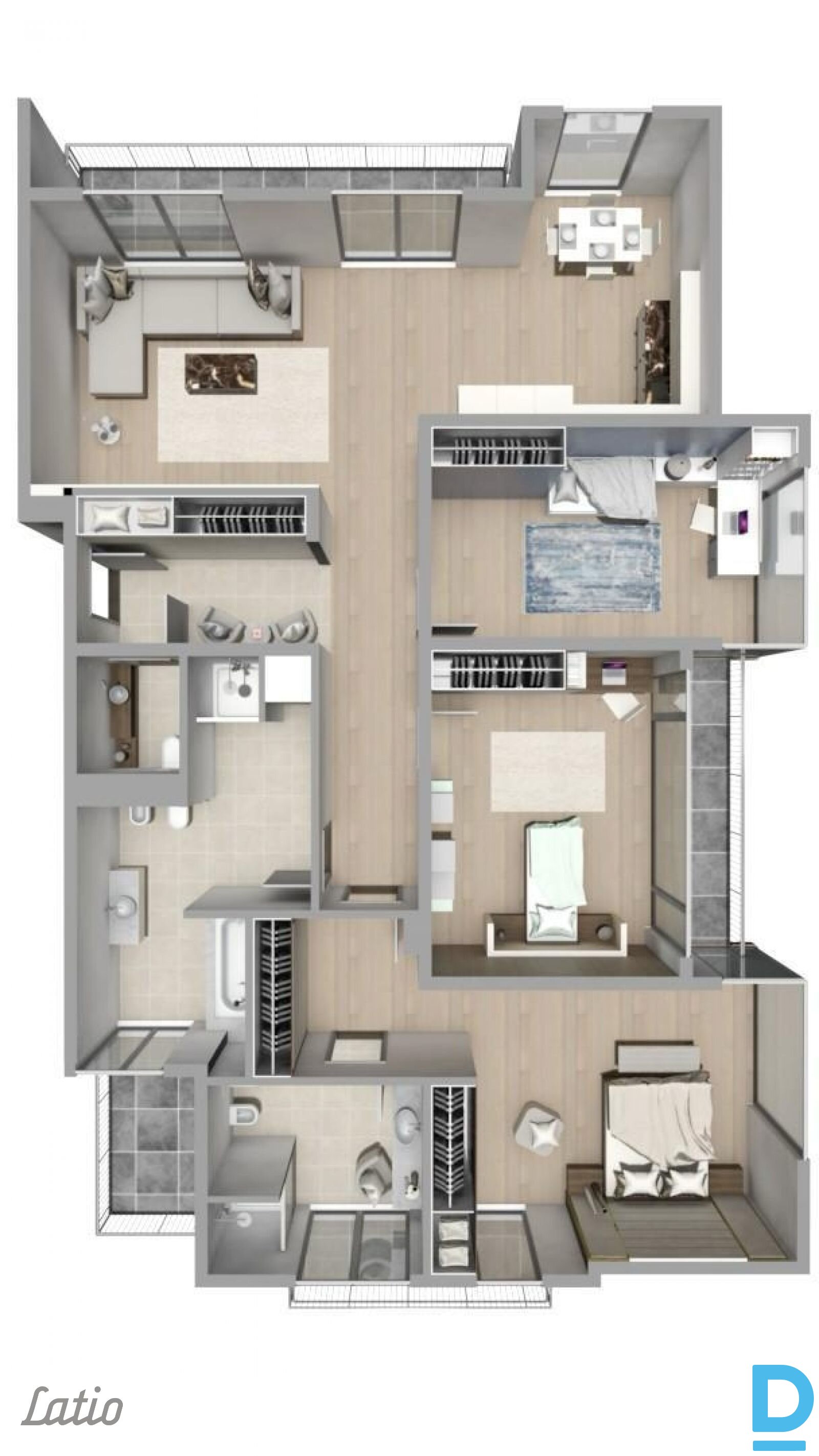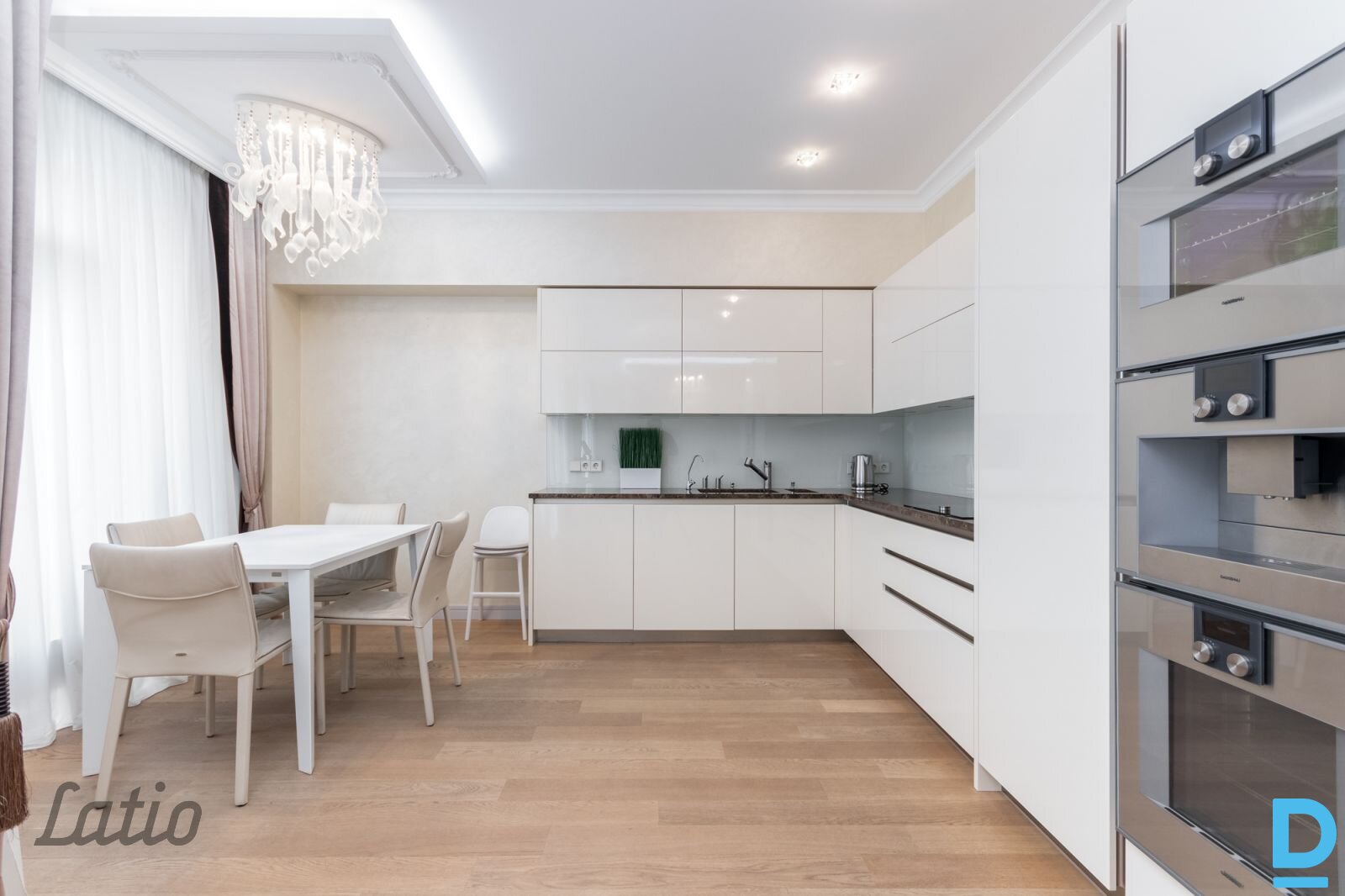 Квартира включает 3 отдельные спальни, гостиную, совмещенную с кухней, 3 санузла, 4 балкона с видом на дом с 3 сторон. Квартира полностью меблирована и оборудована всей необходимой бытовой техникой (холодильник, варочная панель, вытяжка, духовка, паровая печь, встроенная кофемашина, посудомоечная и стиральная машины). В квартире также есть кондиционер. В доме собственный газовый котел, а в квартире — индивидуальный счетчик тепла. Здание огорожено забором, имеется одно парковочное место. В стоимость аренды включены два парковочных места во дворе. Возможна обслуживания квартиры за 100 евро за раз. |